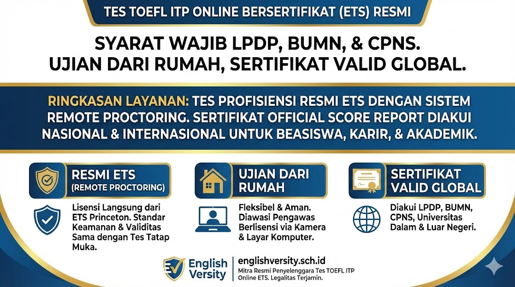 Tes TOEFL ITP Online Bersertifikat (ETS) Resmi: Syarat Wajib LPDP & CPNS